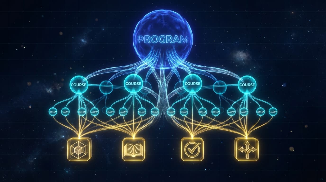 Гибкая модульная структура «ветки и листья» — программы, курсы, уроки и переиспользуемые модули.