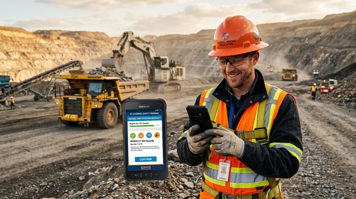 Обучайте сотрудников там, где они работают — в шахте, на буровой платформе, на строительной площадке. Офлайн-режим для зон без связи. Кнопки размером 48px для работы в перчатках.