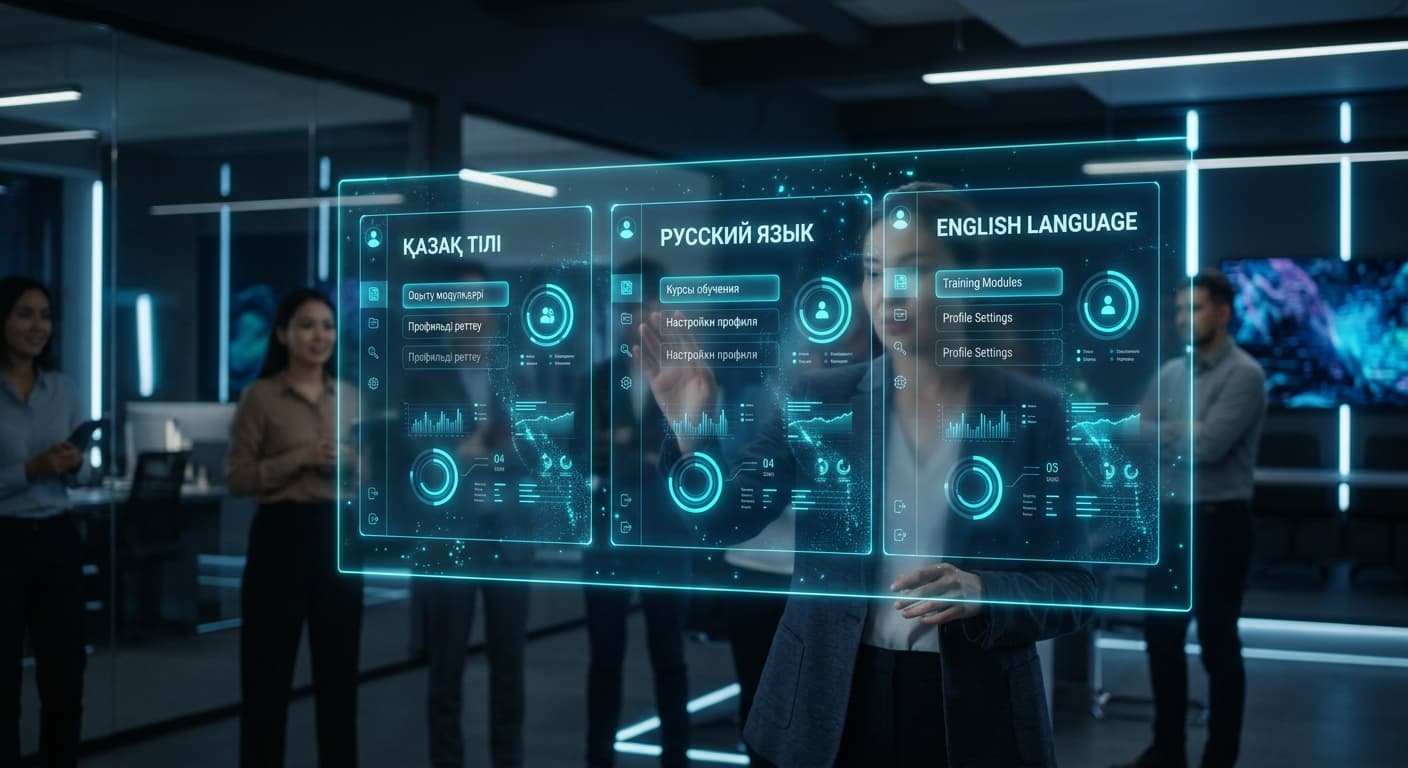 Переключайтесь между казахским, русским и английским в один клик. Весь контент курсов, оценки, сертификаты и системные уведомления доступны на предпочитаемом языке. Ваши сотрудники учатся на том языке, на котором думают.